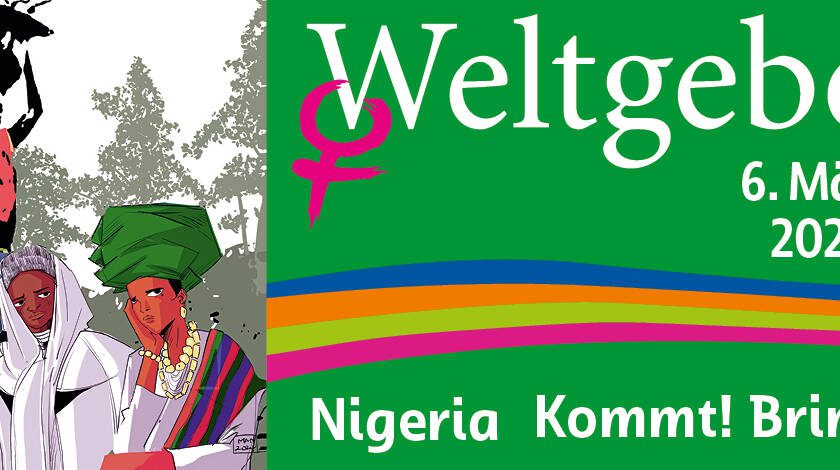 Mit der Einladung von Jesus „Kommt! Bringt eure Last!“ (Matthäus-Ev. 11, 28f) laden Christinnen aus Nigeria in diesem Jahr zum Gottesdienst am Weltgebetstag ein.